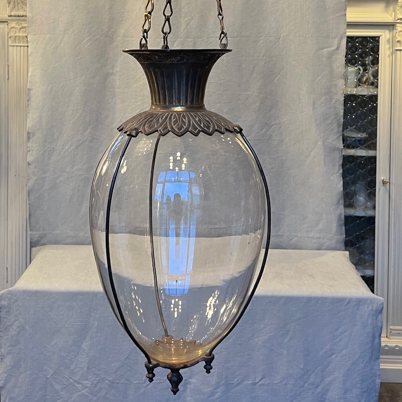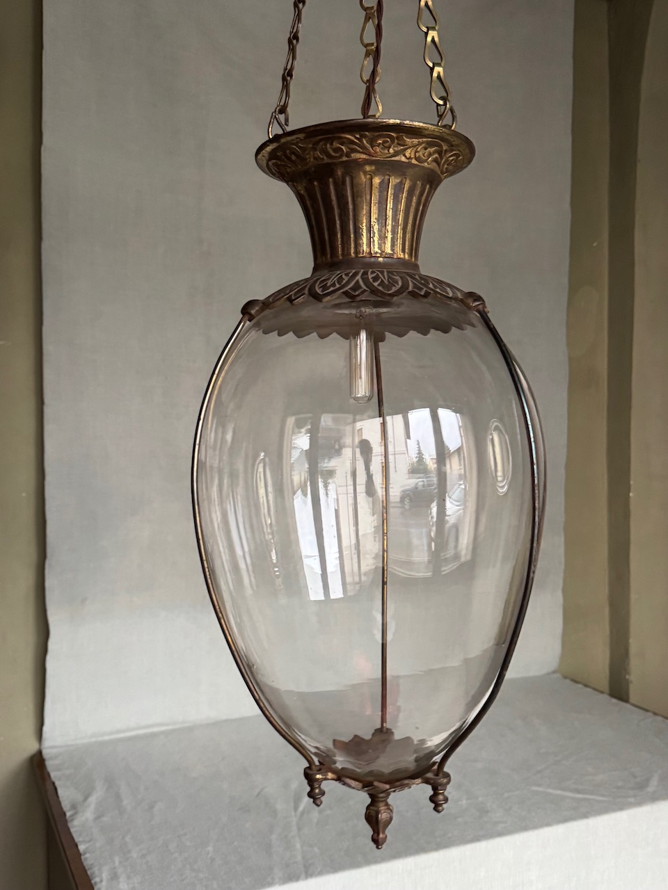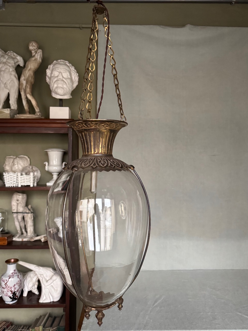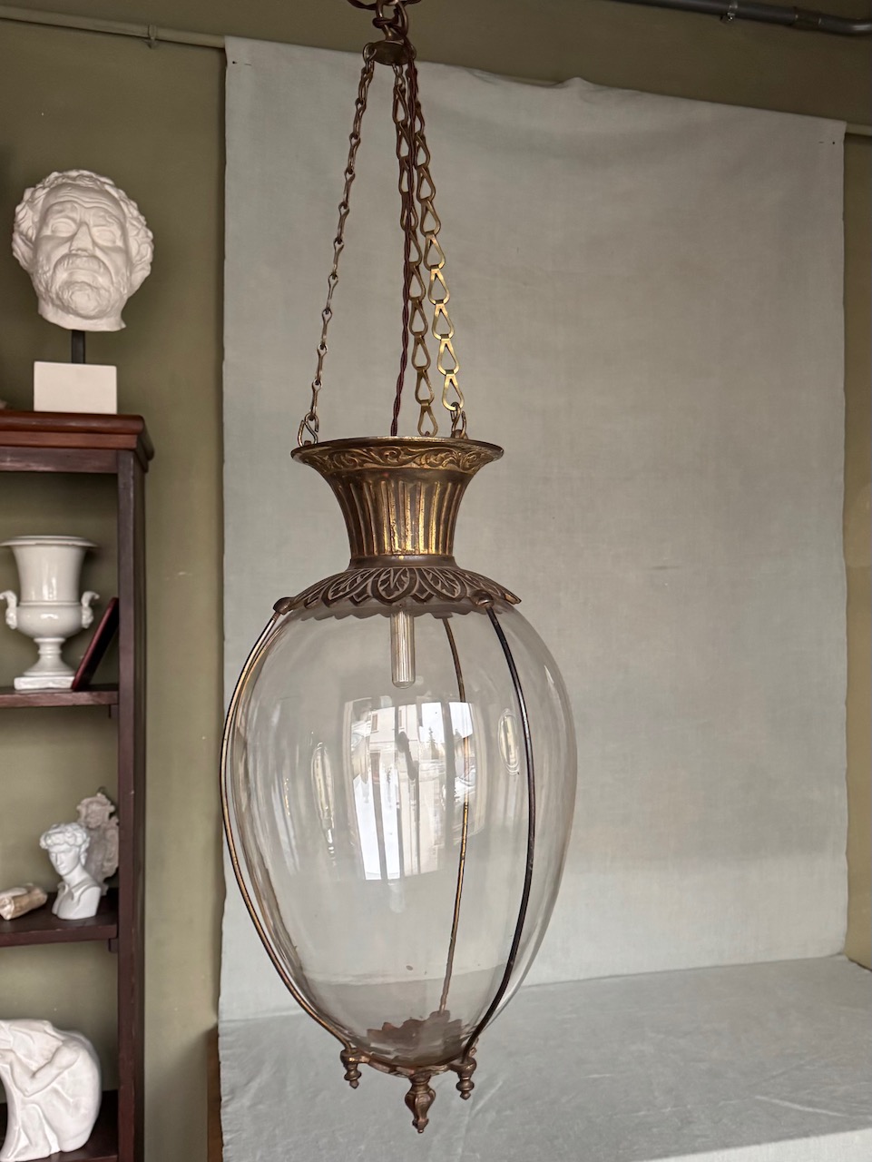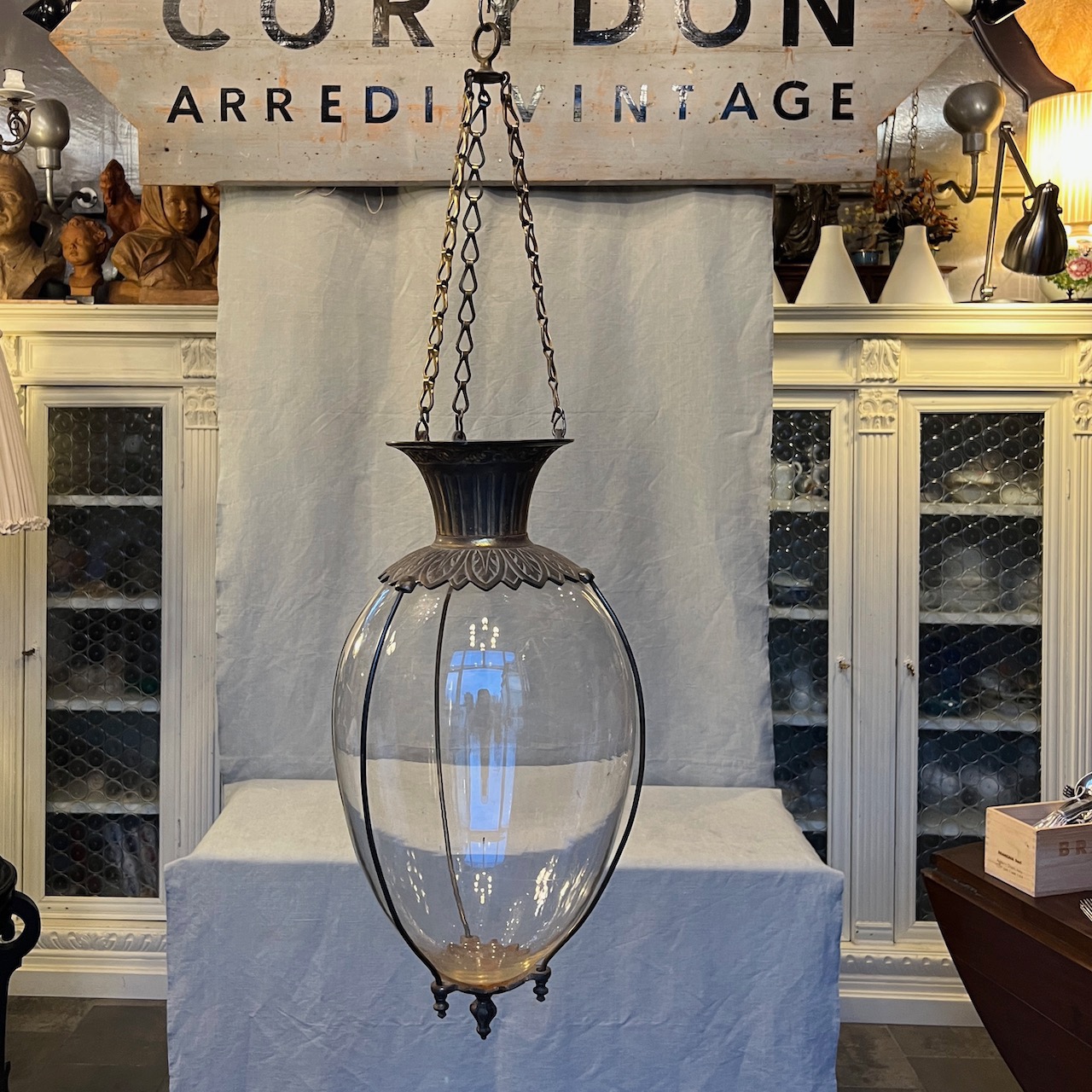 Lanterna farmacia a uovo in cristallo con montatura in bronzo. Inghilterra, sec. XIX