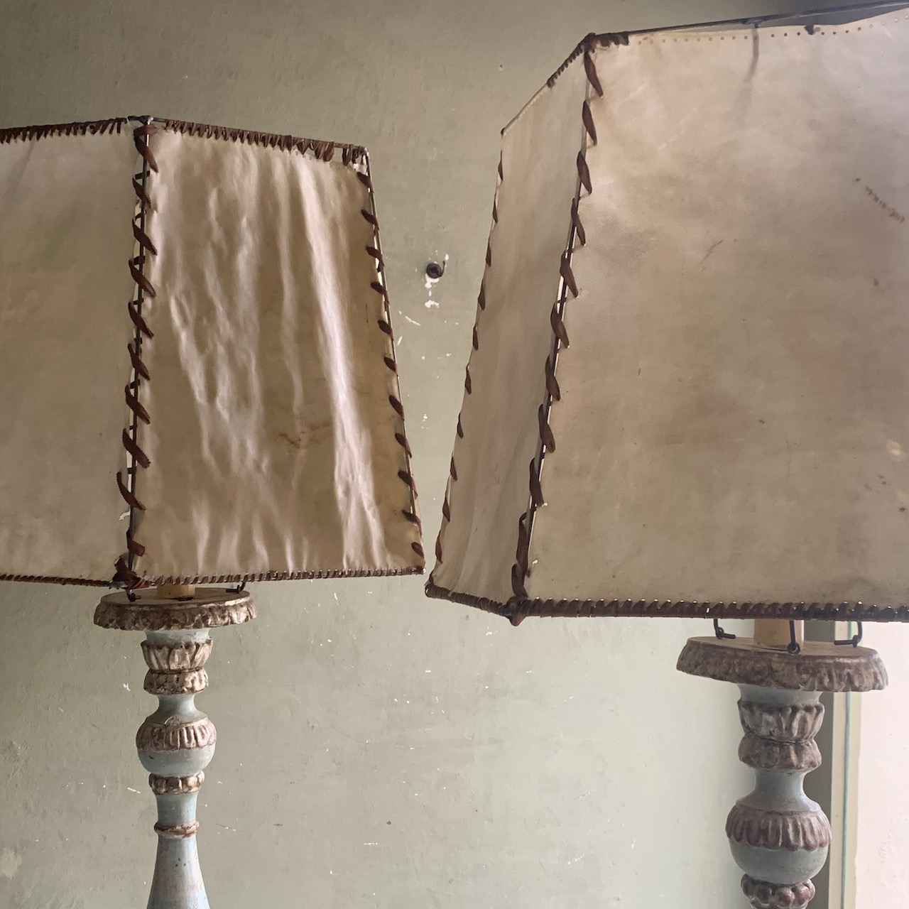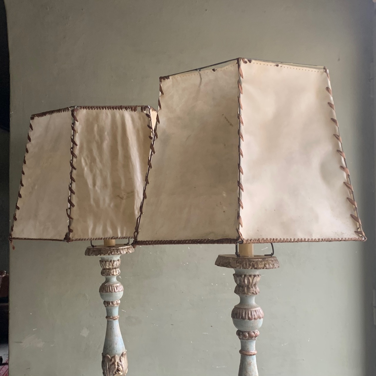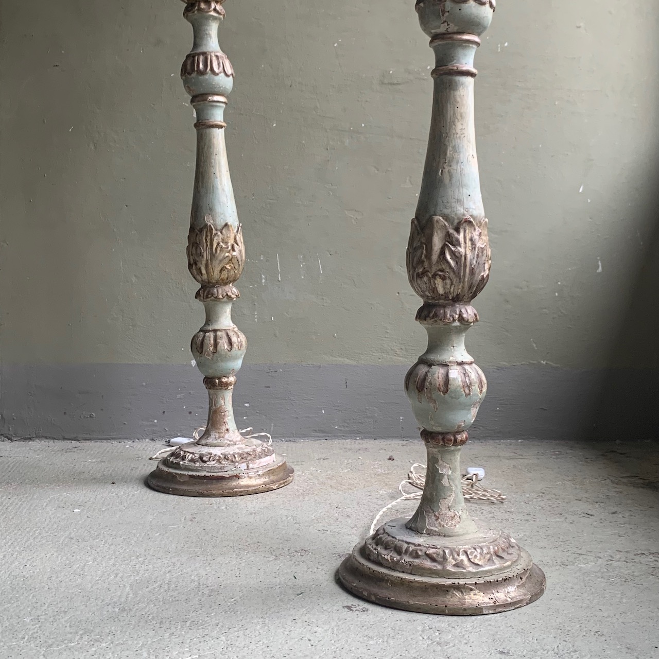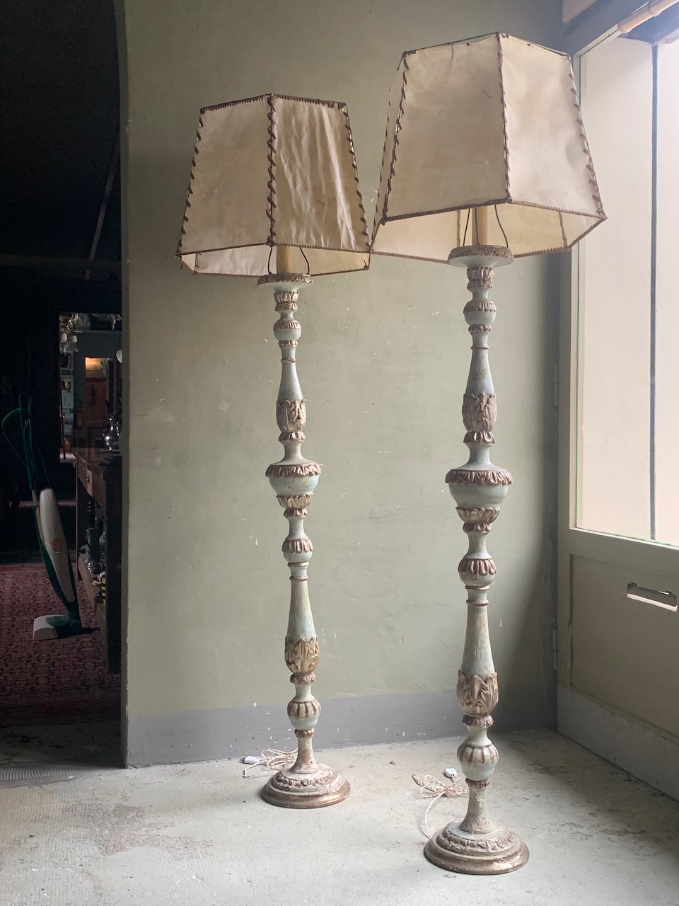 Coppia di lumi da terra laccati in argento. Italia sec. XVIII PARALUME NOLEGGIATO / VENDUTO SEPARATAMENTE