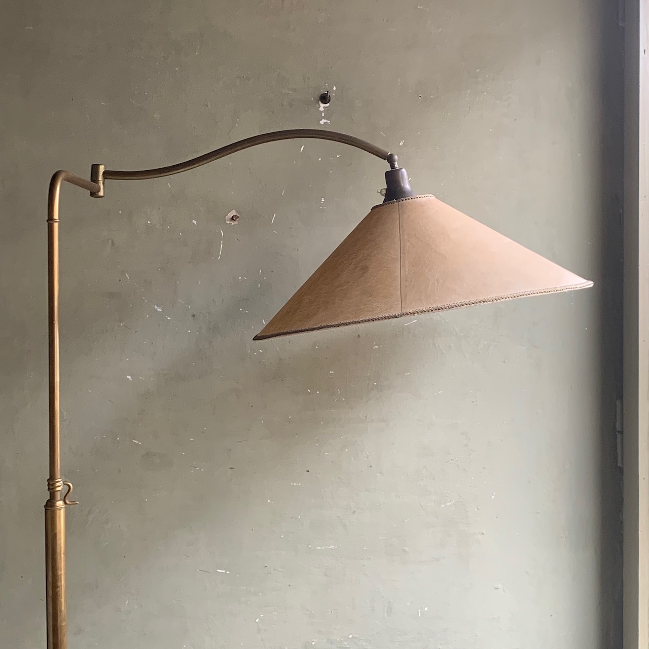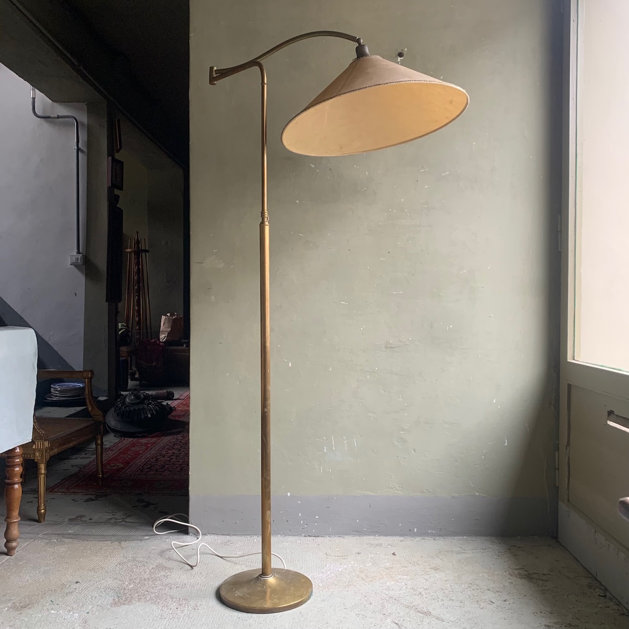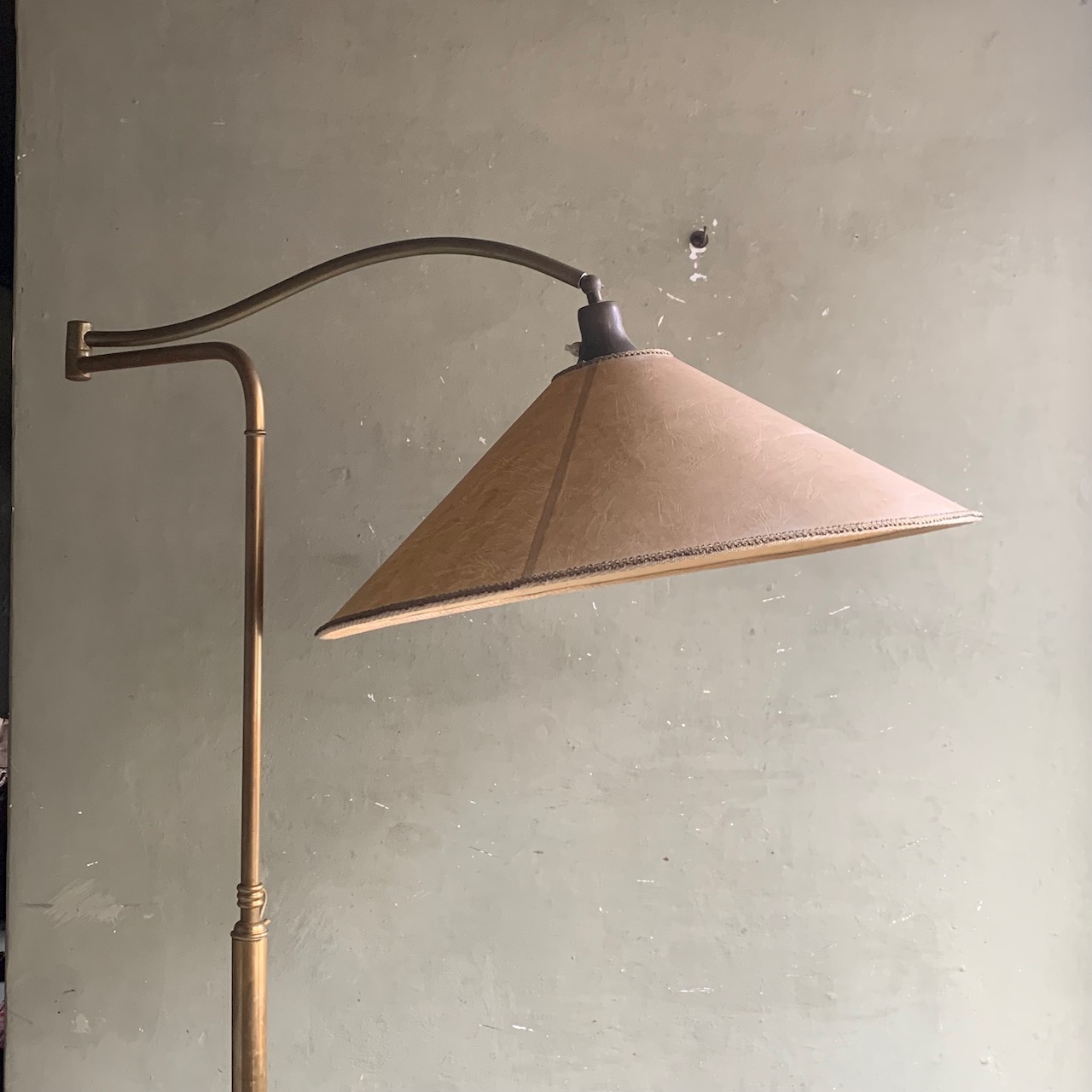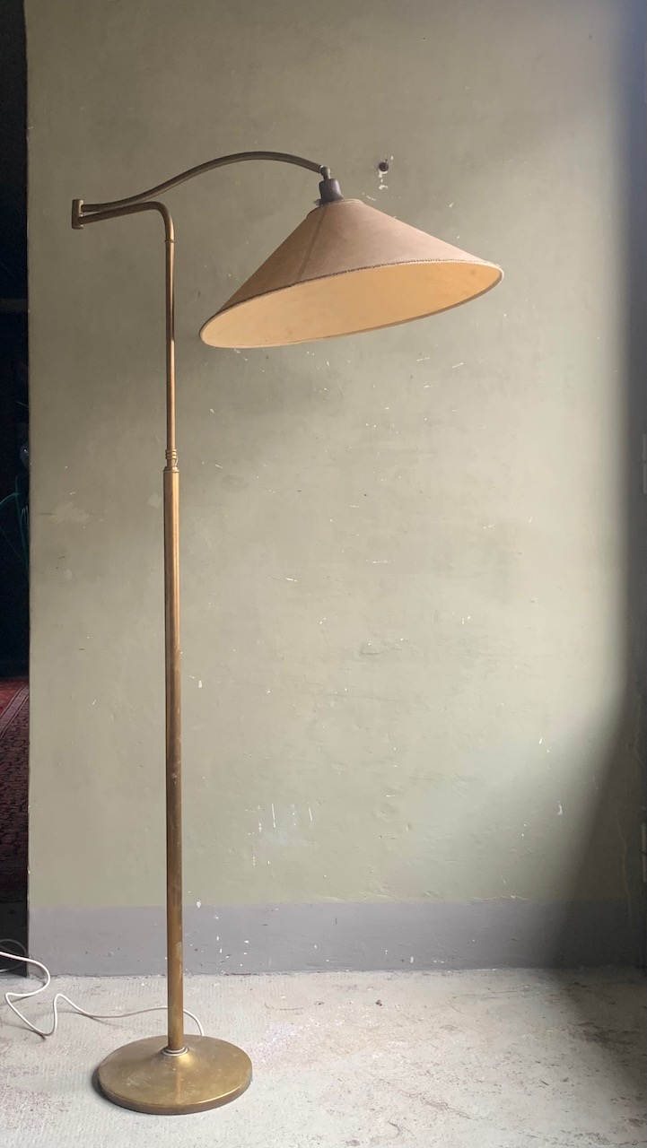 Piantana da lettura in bronzo dorato, montante estensibile e braccio snodato. Italia, sec. XX