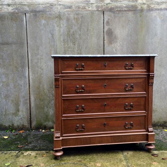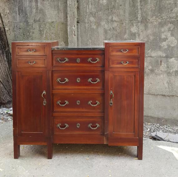 Cassettiera a Colonna in Noce a Cinque Cassetti con Piano in Marmo