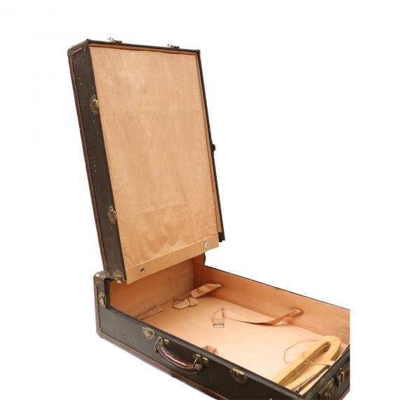 Valigie in pelle, canvas, cartone, cuoio, bauli in ferro, metallo e pelle, legno, di provenienza inglese, francese, americana, utilizzabili con la loro funzione originaria di contenitori ma anche come appoggi o tavolini bassi.