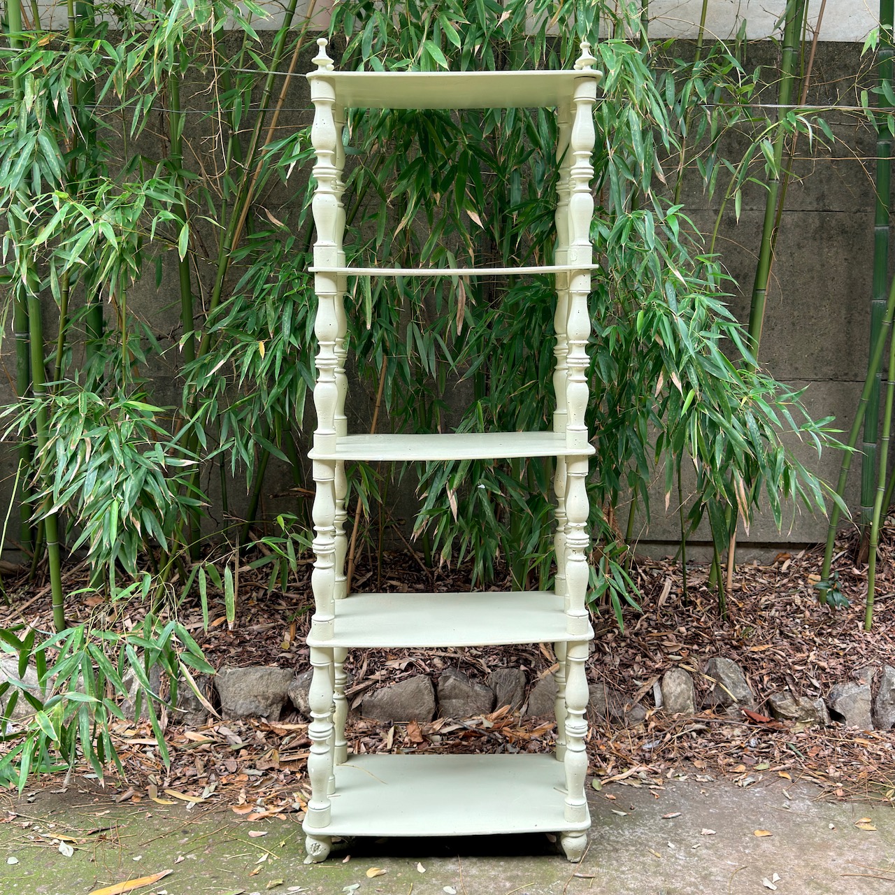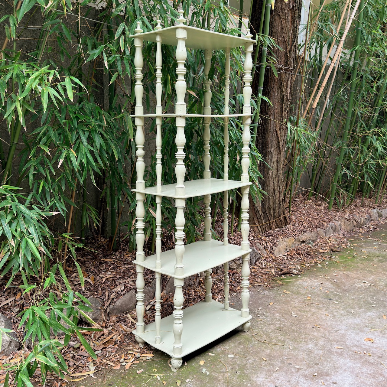Etagère in legno crema, supporti torniti. Italia, sec. XIX