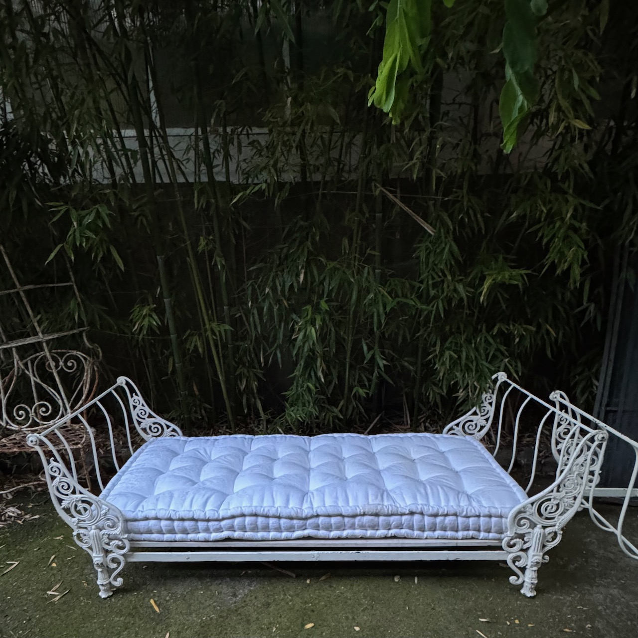 Coppia di divani dormeuse lit de jour in ferro e ghisa laccati avorio. Fonderie Granducali di Follonica, Toscana prima metà sec. XIX RETI / MATERASSI E CUSCINI NOLEGGIATI / VENDUTI SEPARATAMENTE