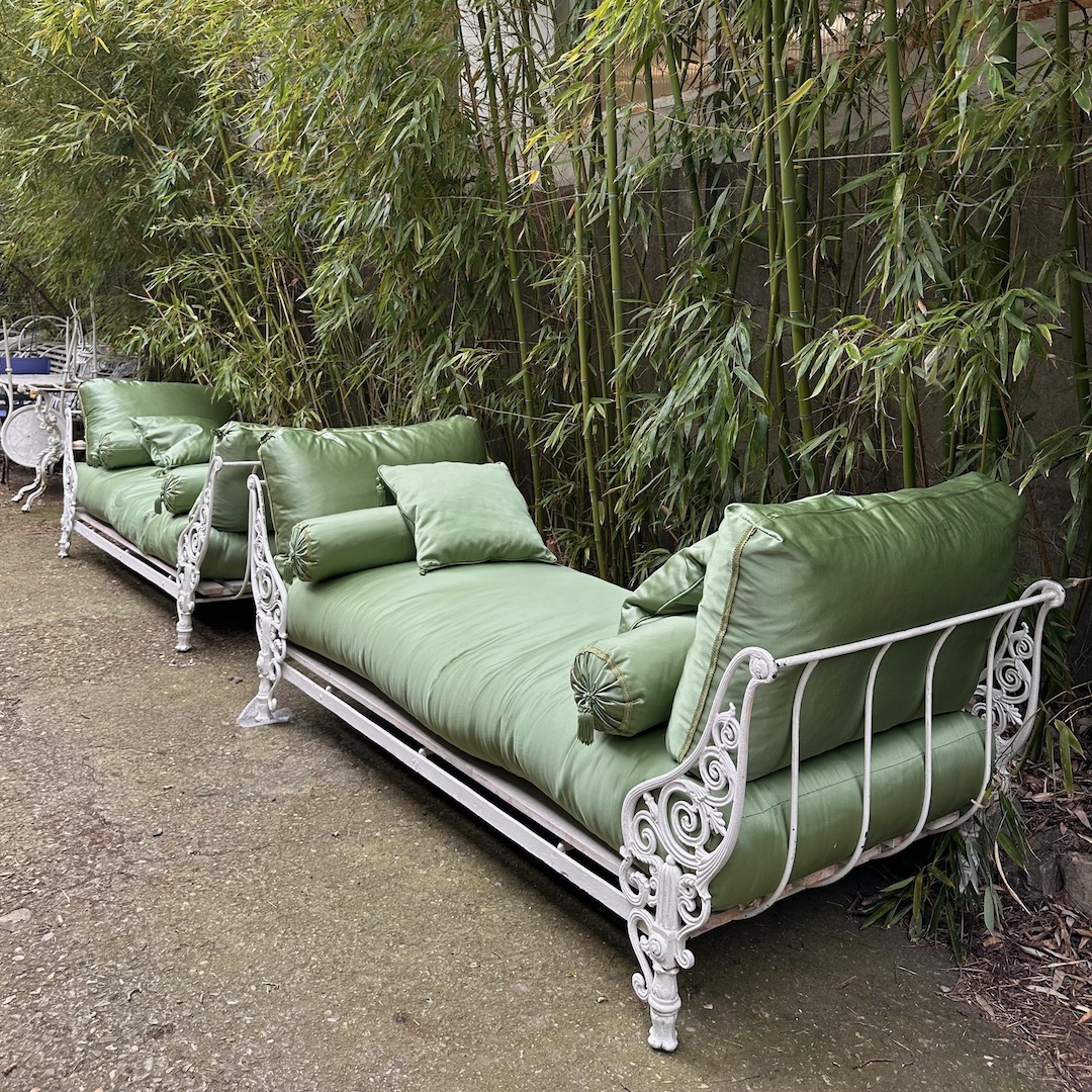Coppia di divani dormeuse lit de jour in ferro e ghisa laccati avorio. Fonderie Granducali di Follonica, Toscana prima metà sec. XIX RETI / MATERASSI E CUSCINI NOLEGGIATI / VENDUTI SEPARATAMENTE