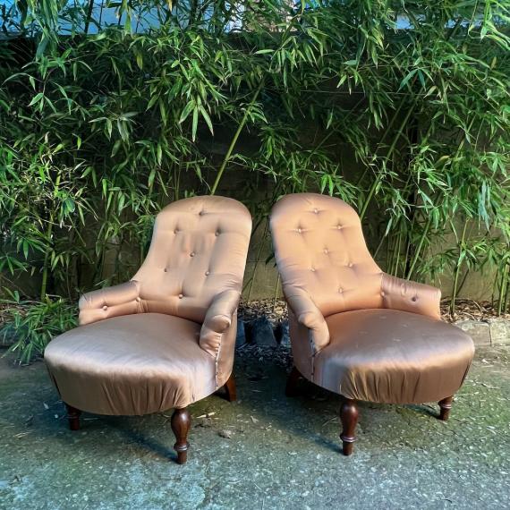 Coppia di Poltrone Curvilinee in Raso di Seta Rosa Pesca