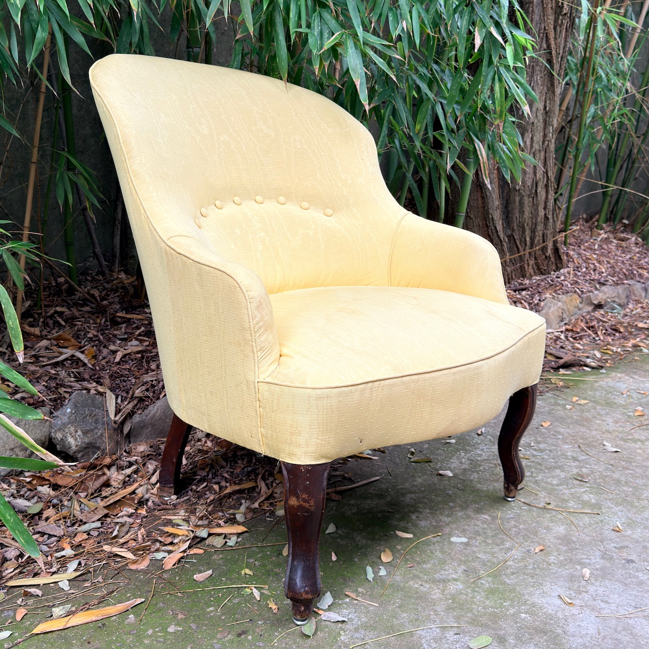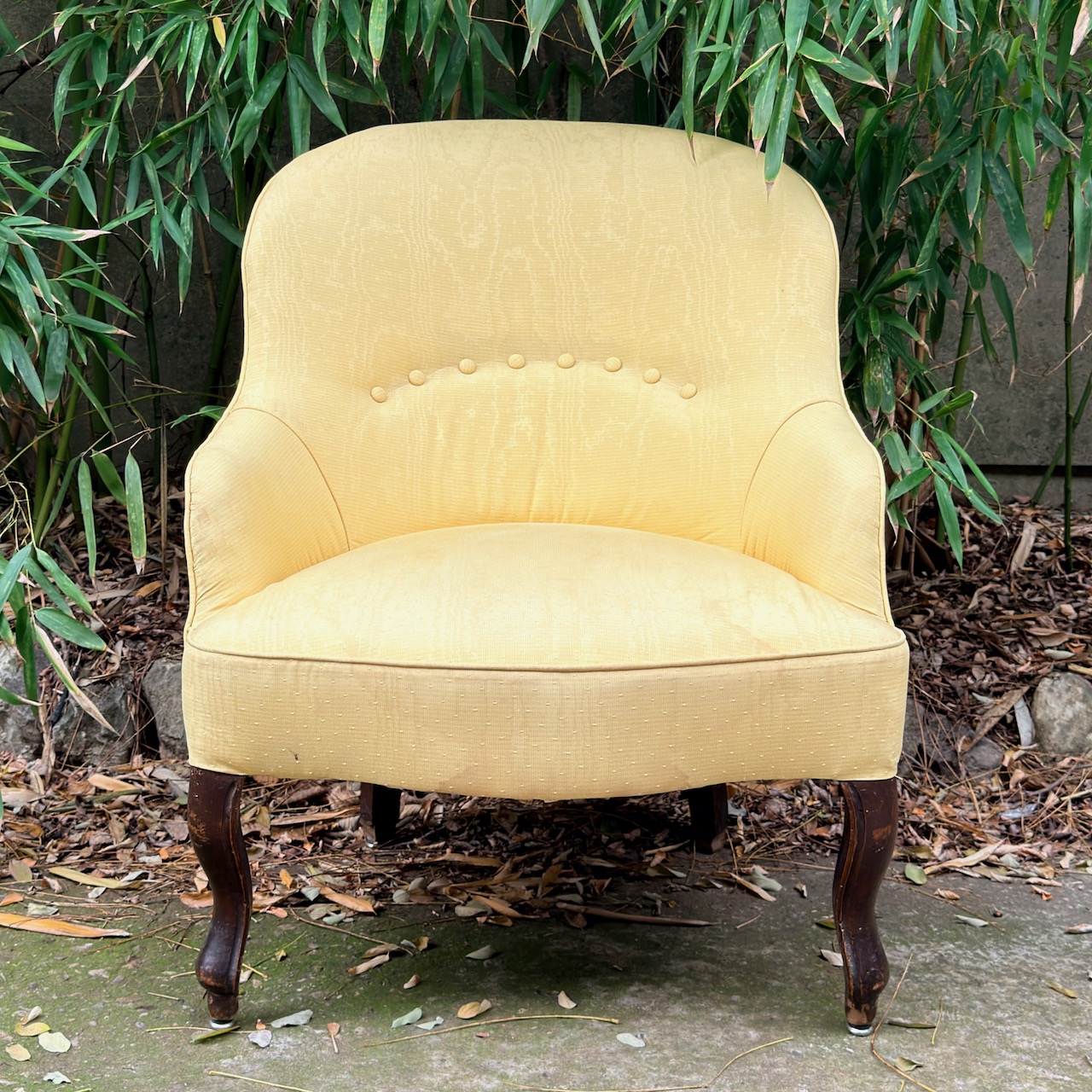 Poltroncina a pozzetto in cottone moire giallo. Italia, sec. XX