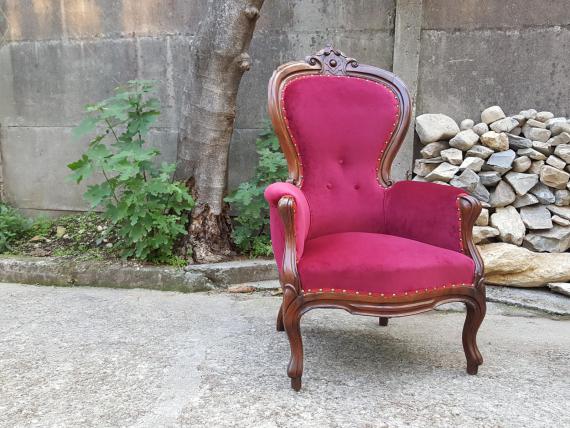 Poltrone Impero, Luigi XVI, Carlo X, ad angolo, a conchiglia, da palco, a pozzetto, bergère, cabriolet, tutte declinate in tessuti diversi, velluti, damascati, sete, pelle che vanno dai rossi bordeau, cardinale, ciliegia, lampone, fino ai rosa antico e cipria.