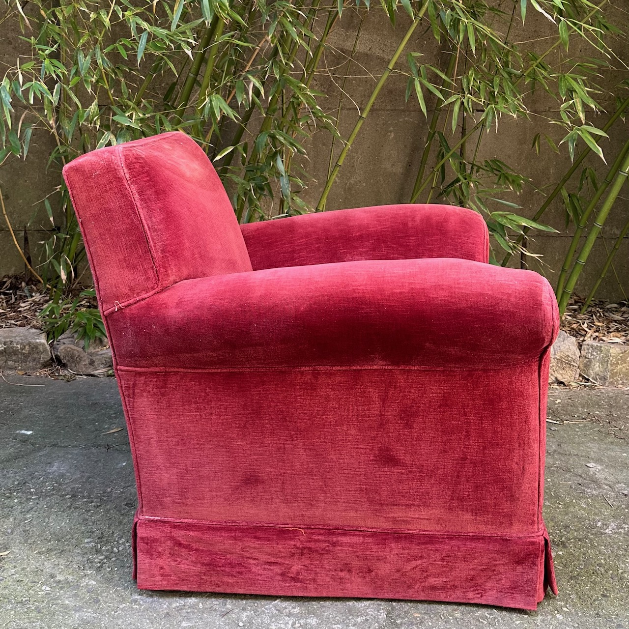 Poltrona in velluto rosso cardinale. Toscana, 1950 circa
