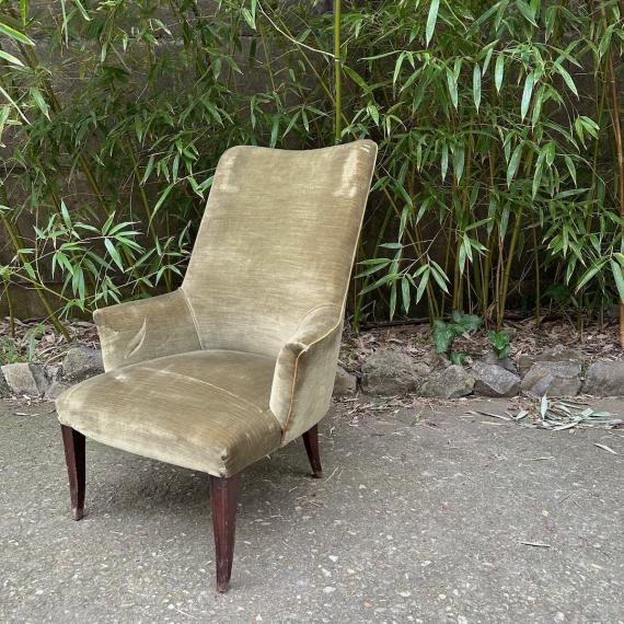 Poltrone di design diverso, a pozzetto, a cuore, a medaglione, bergère, a scudo, da palco, da fumo, da camera, e differenti epoche Luigi XV, Luigi Filippo, Impero, Decò, Mid-century, rivestite con velluto, seta, damascati, pelle.
