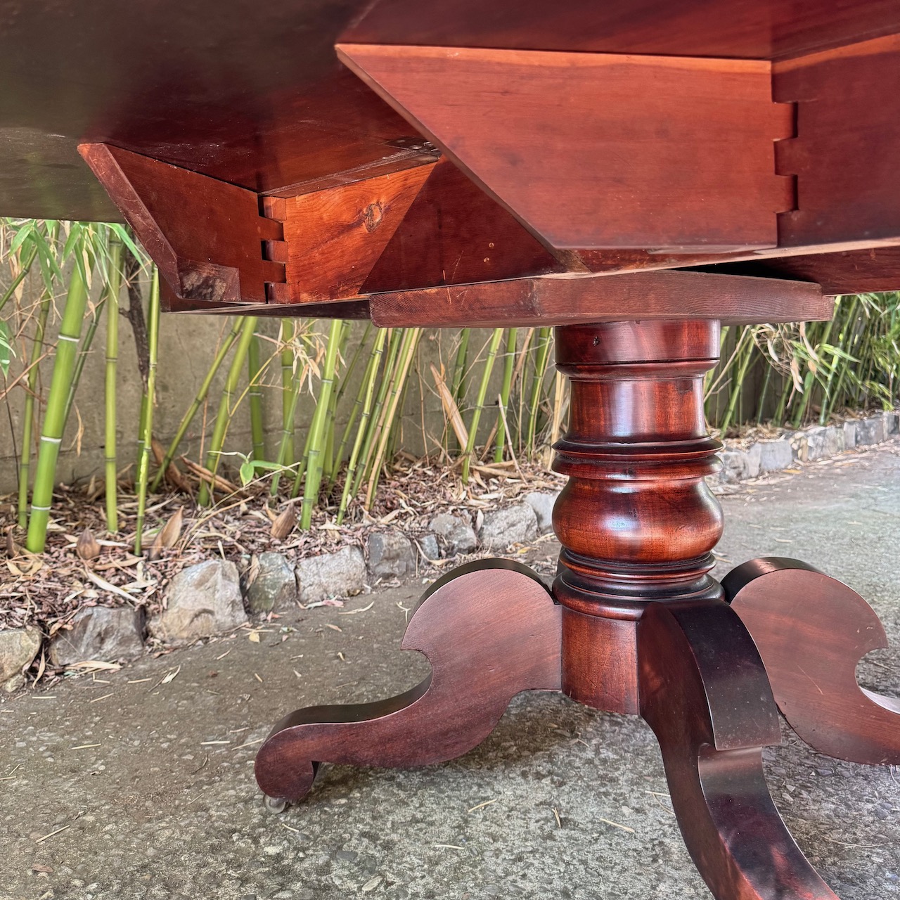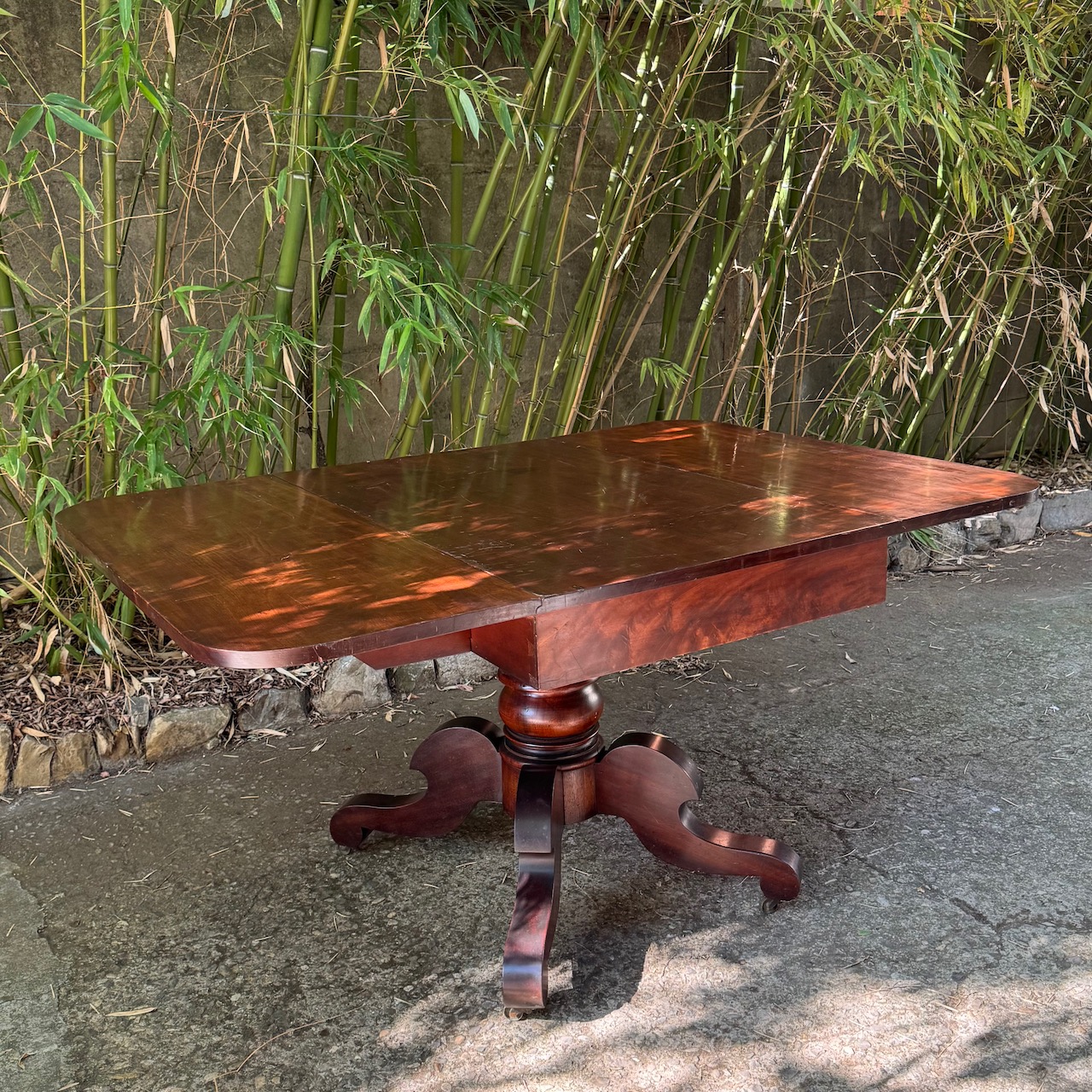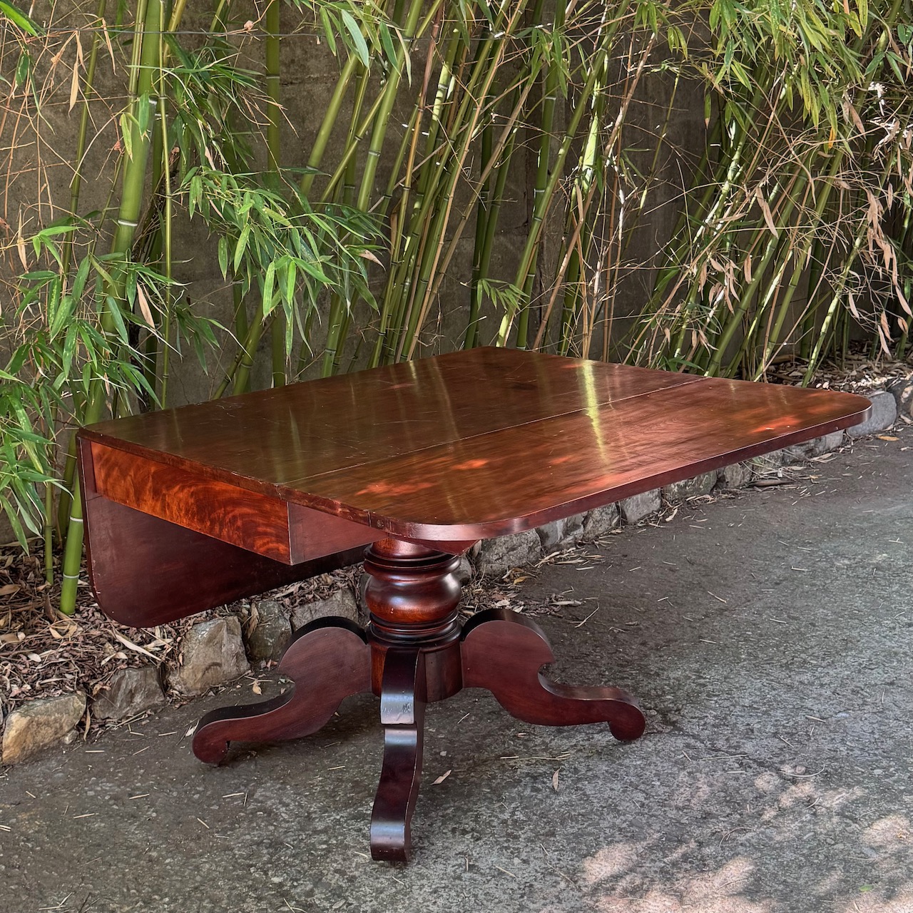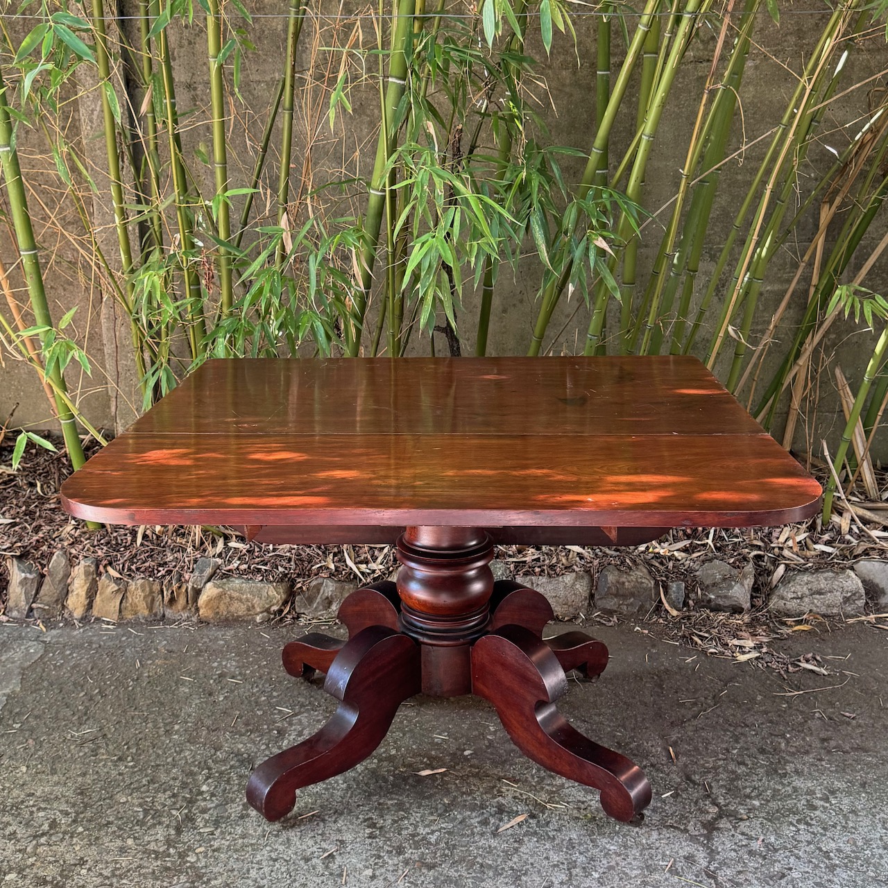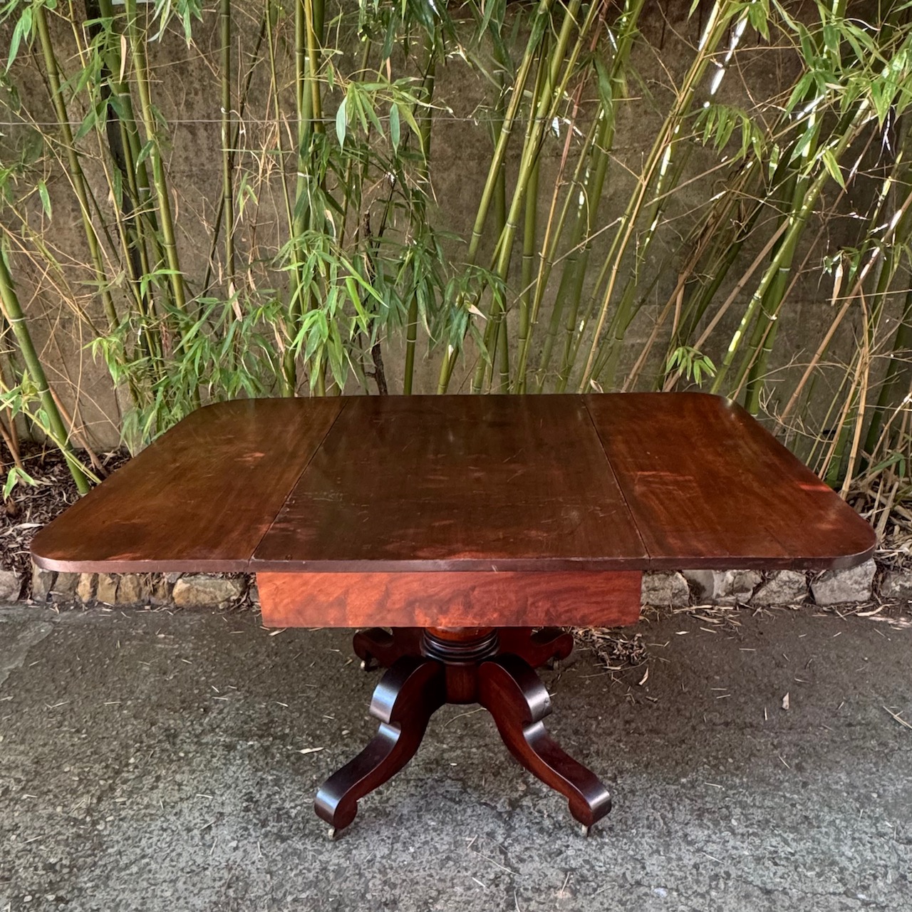Tavolo da centro in mogano, base su quattro gambe e piano con bandelle laterali. Regno Unito, sec. XIX