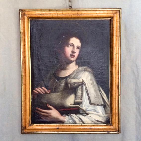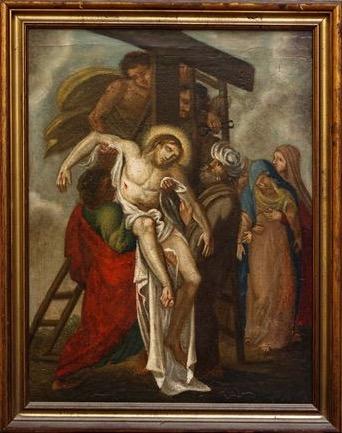Scena Neoclassica, Olio su Tavola in Cornice Dorata