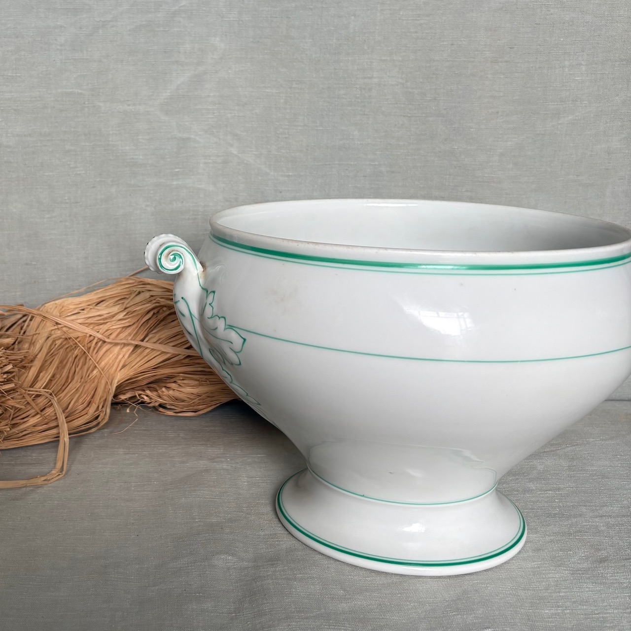 Vaso cachepot rigo verde in porcellana smaltata. Manifattura Ginori, Sesto Fiorentino, 1916 circa