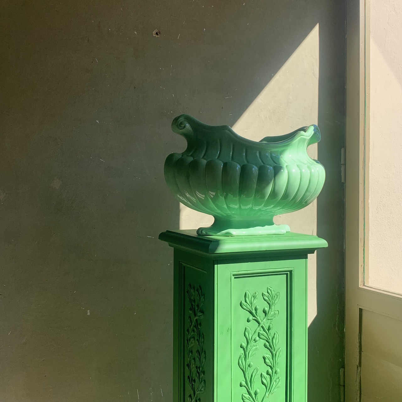 Grande Fioriera Navona, Collebi in maiolica a smalto berillo. Toscana, Italy