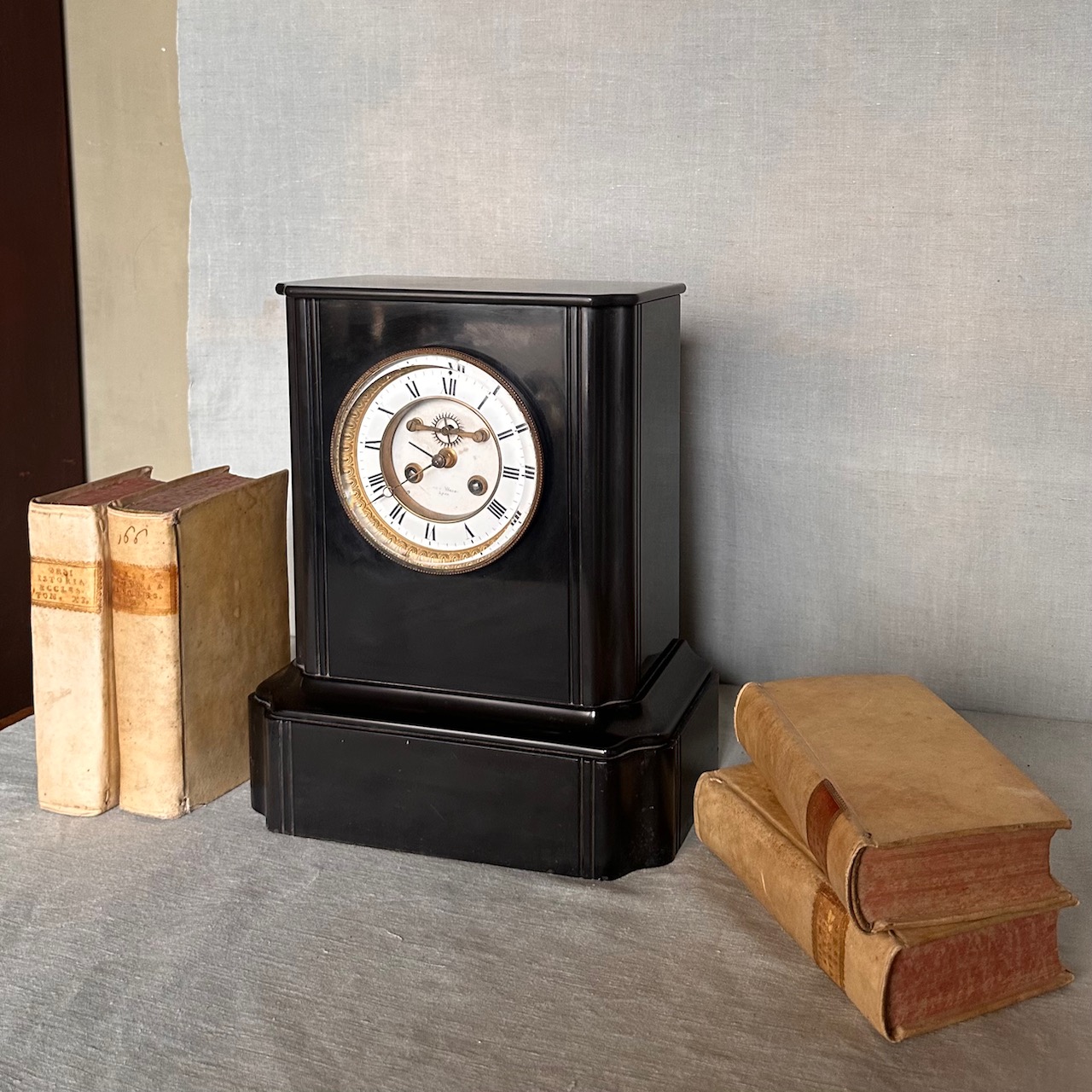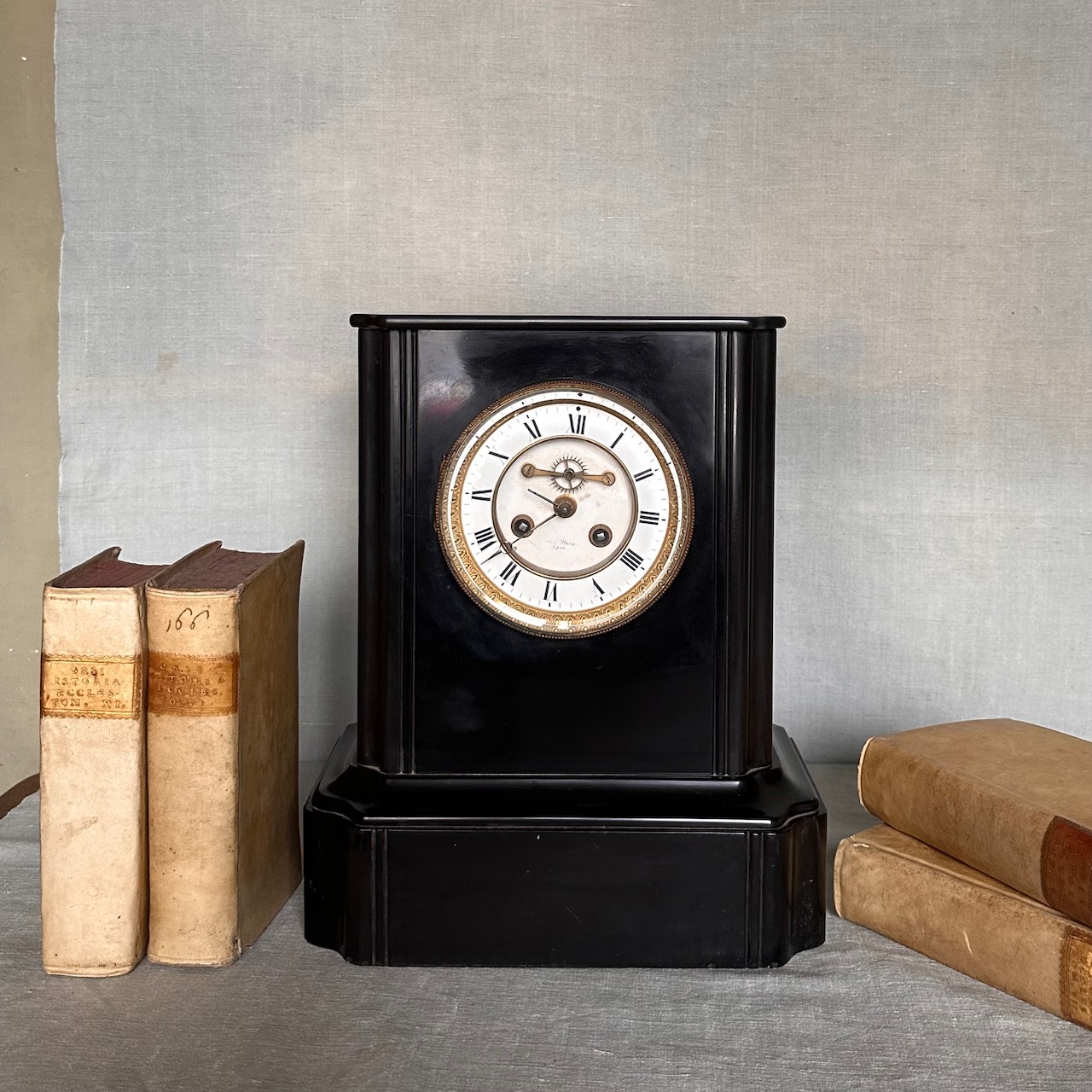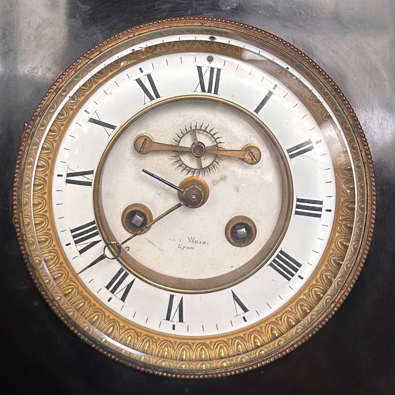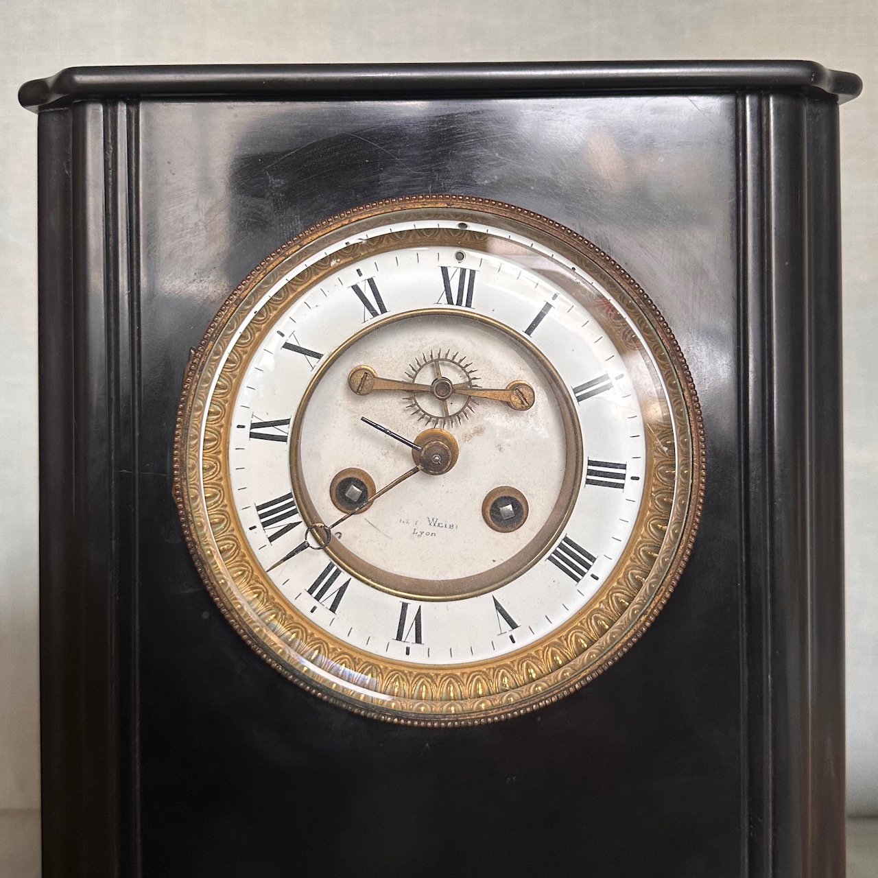 Orologio da mensola in marmo nero del Belgio. Francia, fine sec. XIX