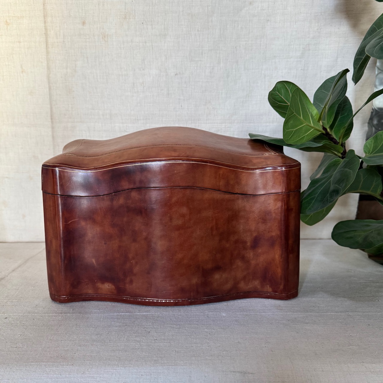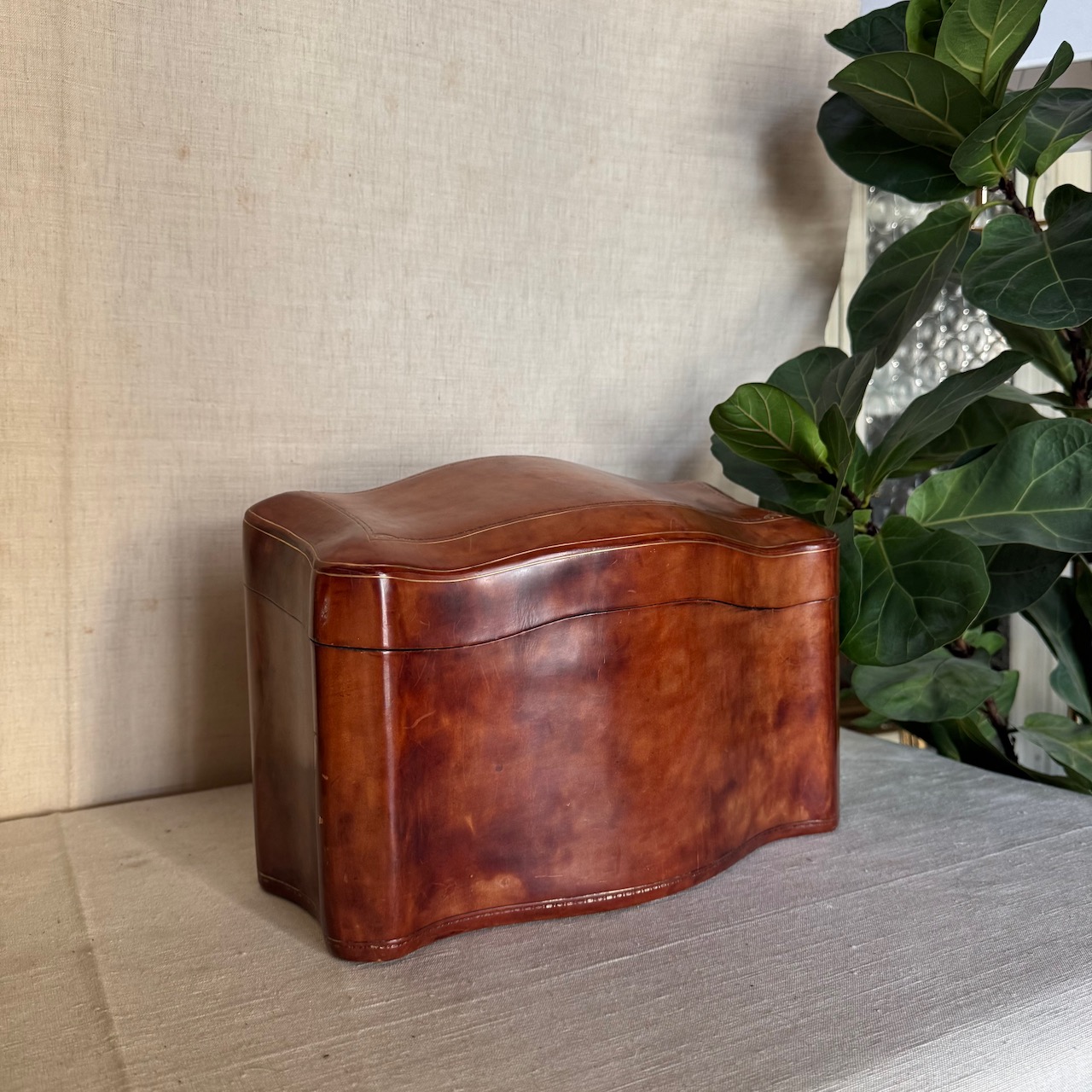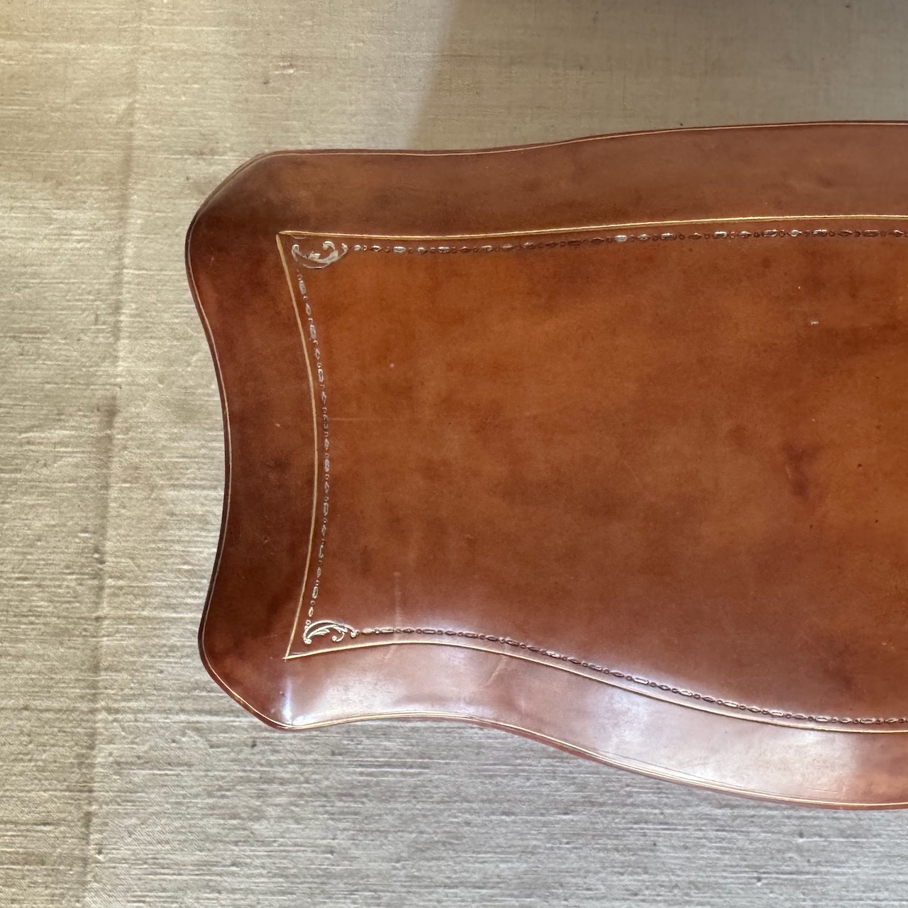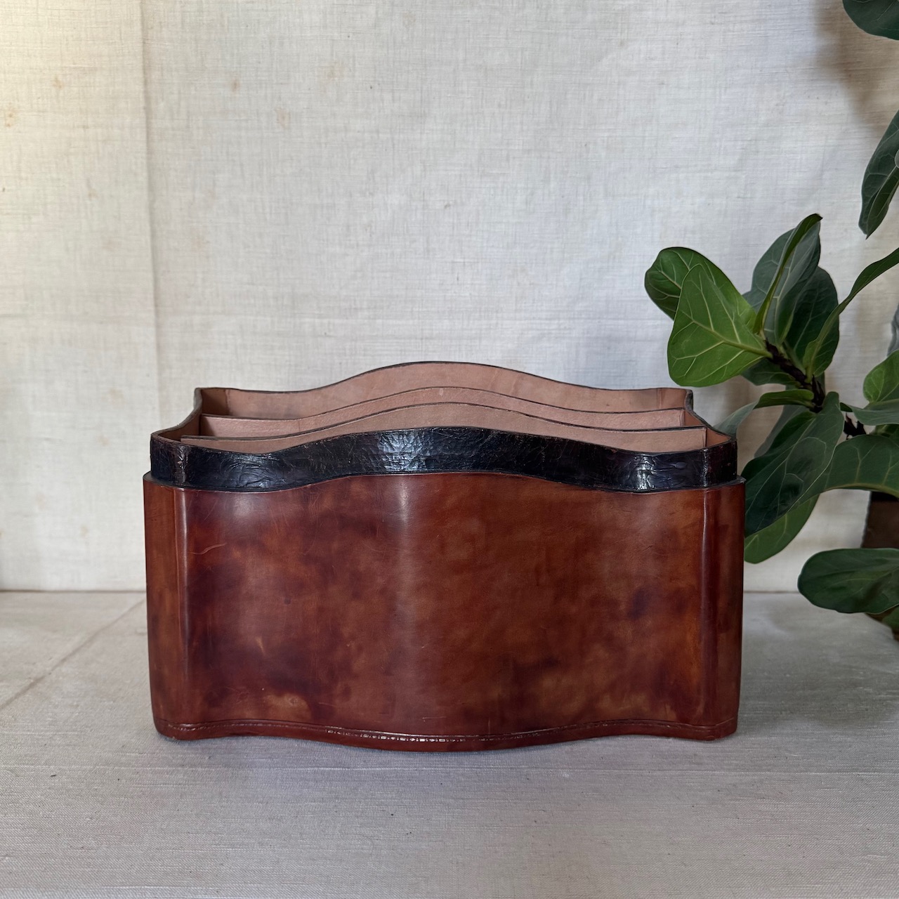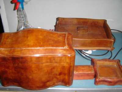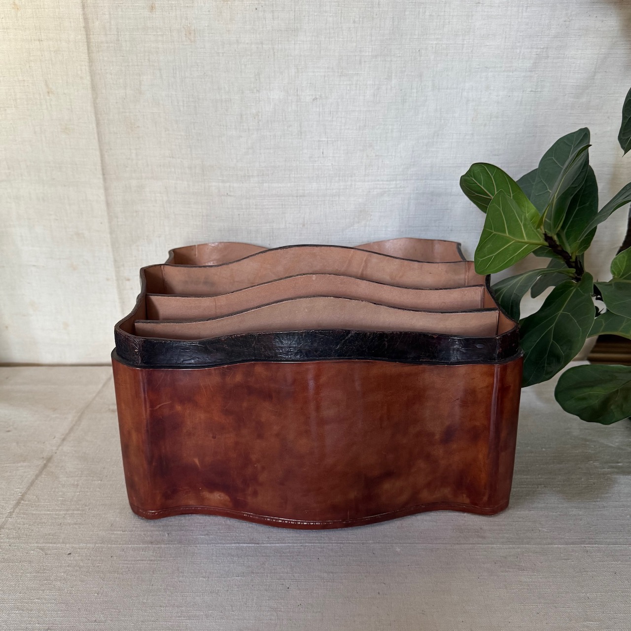 Set da scrivania in cuoio, cinque pezzi. Italia, 1950 circa