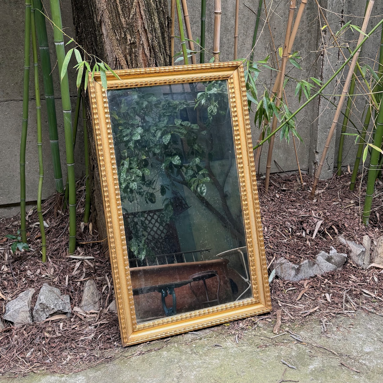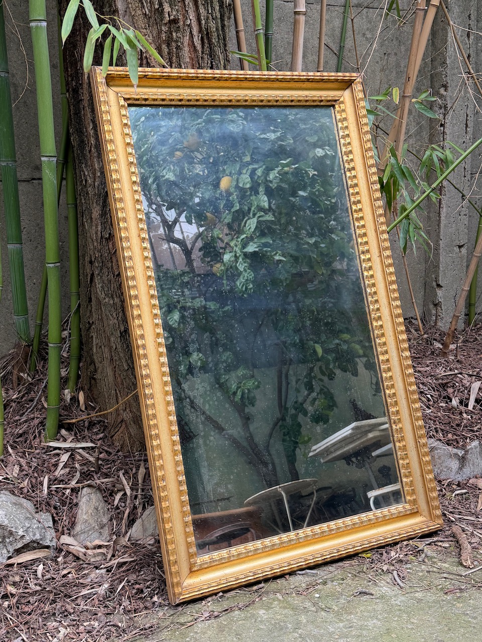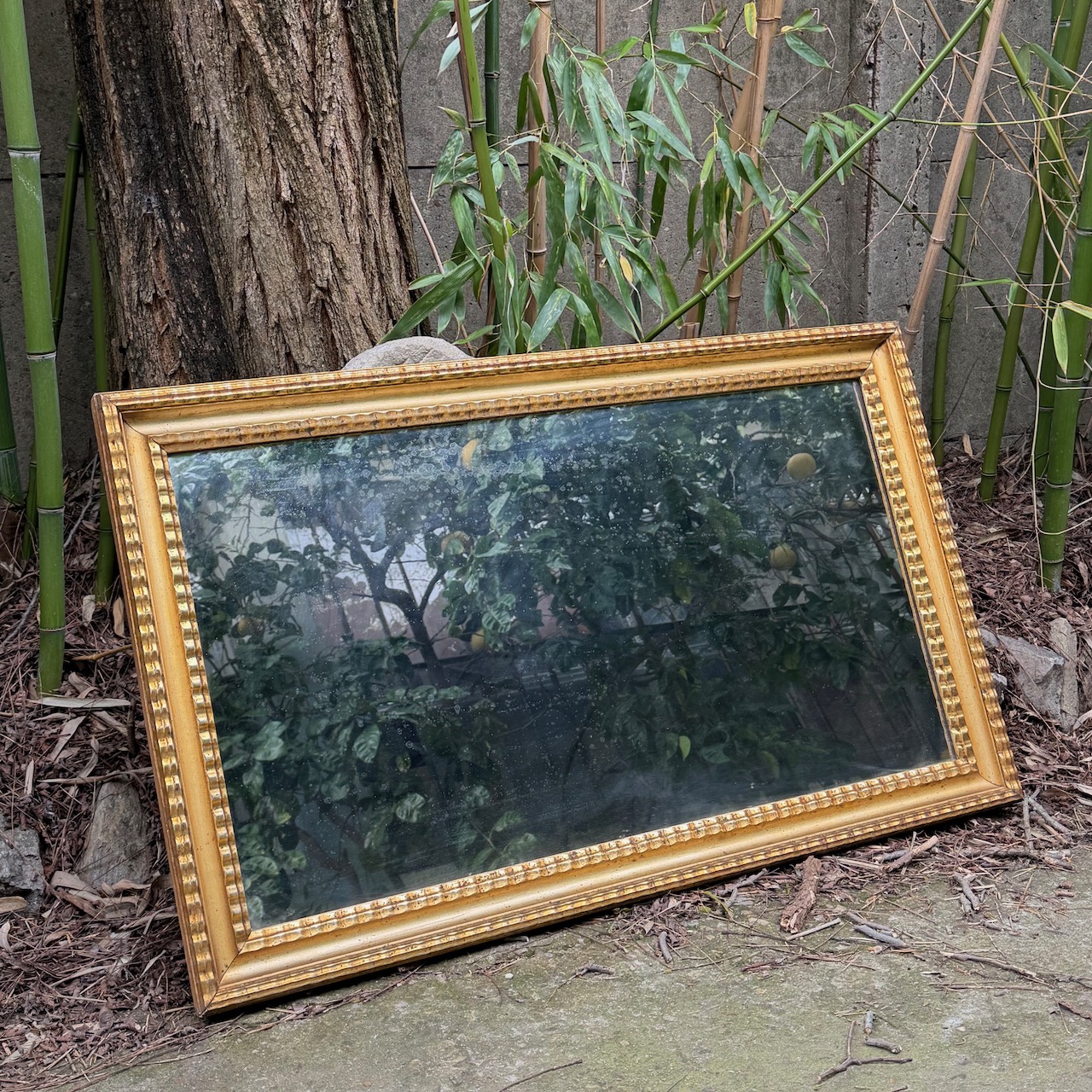 Specchiera rettangolare con cornice in legno e pastiglia dorata. Italia, sec. XX