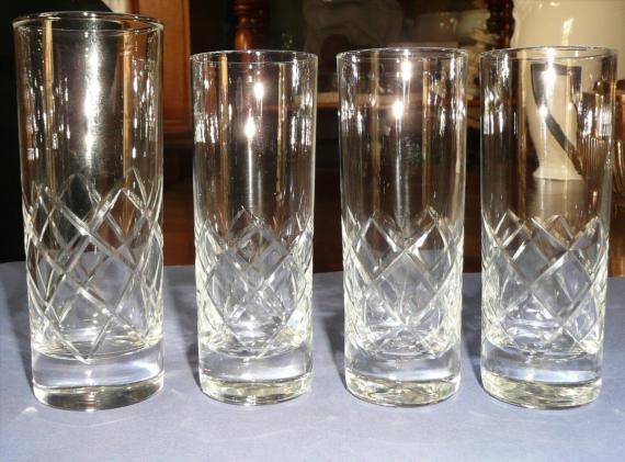 Bicchieri, calici, brocche, bottiglie, potiche, coppette, piccole anfore, alzate, ampolle, portabiscotti, in vetro, vetro molato, vetro iridescente, cristallo, cristallo nuvolato, vetro opalino
