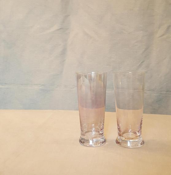 Bicchieri, calici, brocche, bottiglie, potiche, coppette, piccole anfore, alzate, ampolle, portabiscotti, in vetro, vetro molato, vetro iridescente, cristallo, cristallo nuvolato, vetro opalino