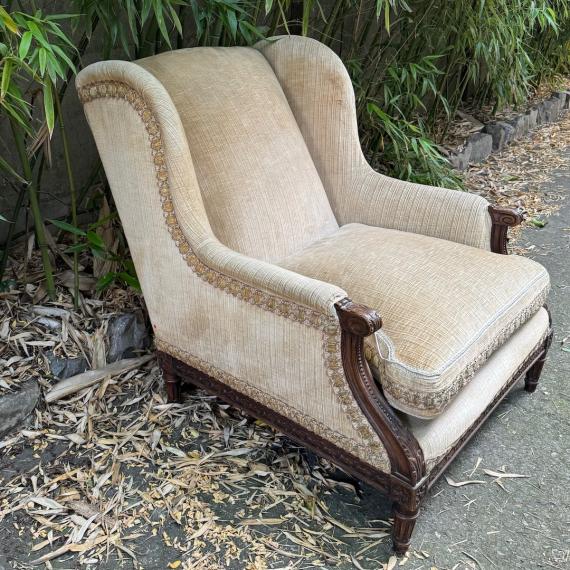 Poltrona Capitonné in Damasco di Seta Verde Salvia
